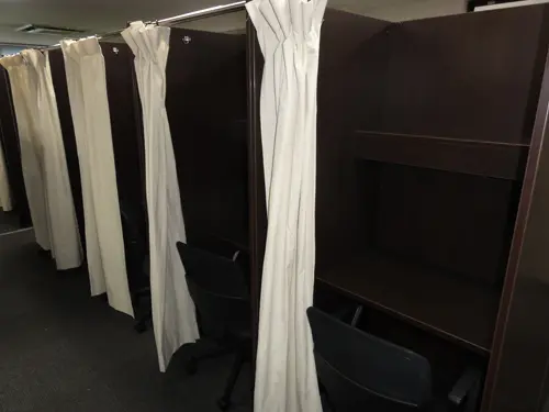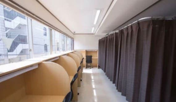 • 個室仕様:マイデスクやiDeskは全席が座席の左右にパーティション、後方にカーテンを備えたの個室仕様の座席になっています。個室仕様になっていない自習室は他人が視界に入ったり他人の視線にさらされることになるため、他人の視線が気になることがあります。
